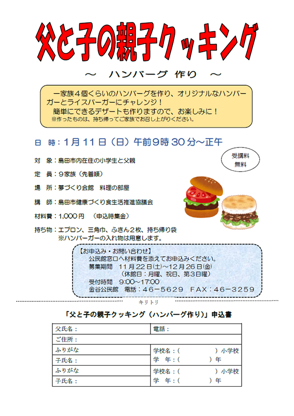 対 象:島田市内在住の小学生と父親