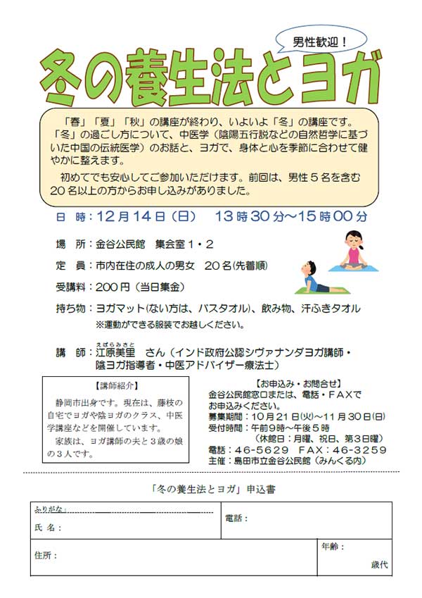 「冬」の過ごし方について、中医学のお話とヨガで、身体と心を健やかに整えます。